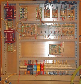 The electronics control portion is a combination of the U3-LV, and a few boards that were designed in Eagle and etched using the toner transfer method and Pulsar transfer paper.
