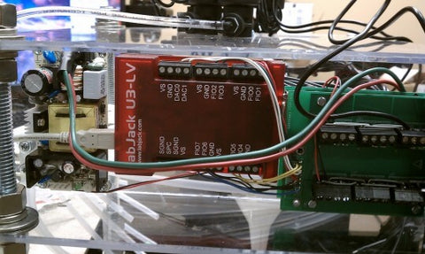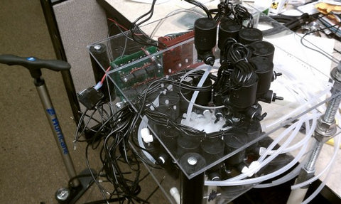 The solenoid valves are all wired into the power switching circuit, which is controlled through the EIO, CIO, and FIO lines on the U3. Using a python script running on a local PC the valves are opened and closed. The next step is to buy a bunch of alcohol and connect the piping.