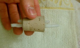 The images above show a simplified method for creating bottle stoppers. Use any size cork and some ShapeLock Design Plastic molded around a 1/8" diam. rod. Flaring the plastic slightly aids in creating a good seal.