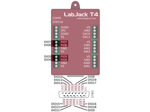 - The T4 has 4 single-ended analog inputs with +/-10V range, plus up to 8 digital I/O lines can be configured as single-ended analog inputs with 0-2.5V range. Similar but not exactly the same as the U3 AIN system.