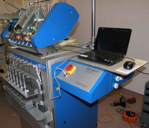 This is a laboratory spinning machine. One each working in Texas, South Carolina, and Switzerland. 3 servo axes drafting system, 1 linear axis ring rail, 2 inverters for spindles and suction. All of it running through VB.net in Windows 7, real time.